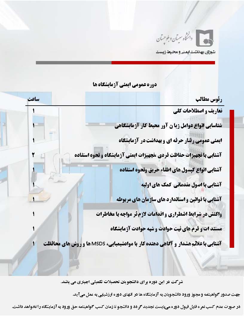 دوره آموزش ایمنی عمومی آزمایشگاه ها و کارگاه ها -برگزار شد.