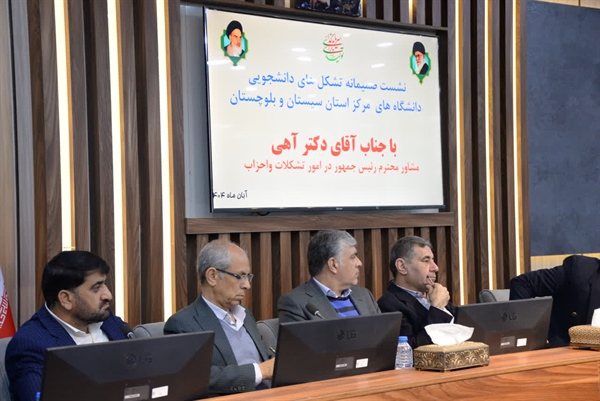 دکتر نورالدین آهی، مشاور رئیسجمهور در امور تشکلها و احزاب، با نمایندگان تشکلهای اسلامی دانشگاههای استان، در تالار شه...