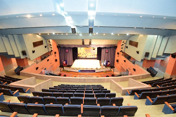 ظرفیت 1000 نفر- زیر بنا 6000 مترمربع – مجهز به سن گردان به عمق 14 متر، ارتفاع 26 متر ومیزانسن 17 متر –سیستم صوت دالبی دیجیتال ودالبی پرو لوجینگ -250 میکروفون با قابلیت استفاده 25 میکروفون و سیستم نورپردازی حرفه ای