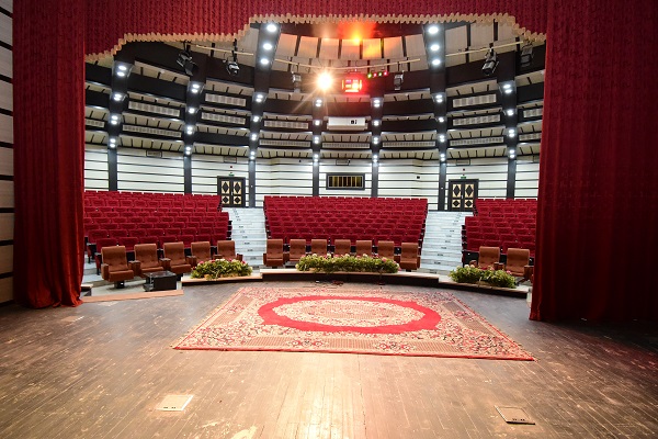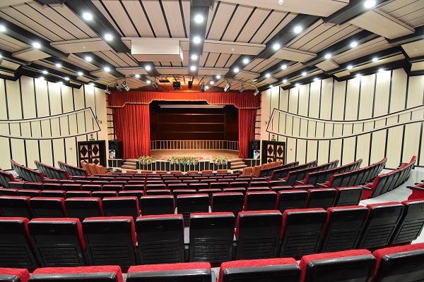 مساحت:1000 مترمربع، ظرفیت:500 نفر، مجهز به سیستم صوت و تصویر پیشرفته، دارای نور عمومی و تخصصی، مساحت سن: 80 مترمربع