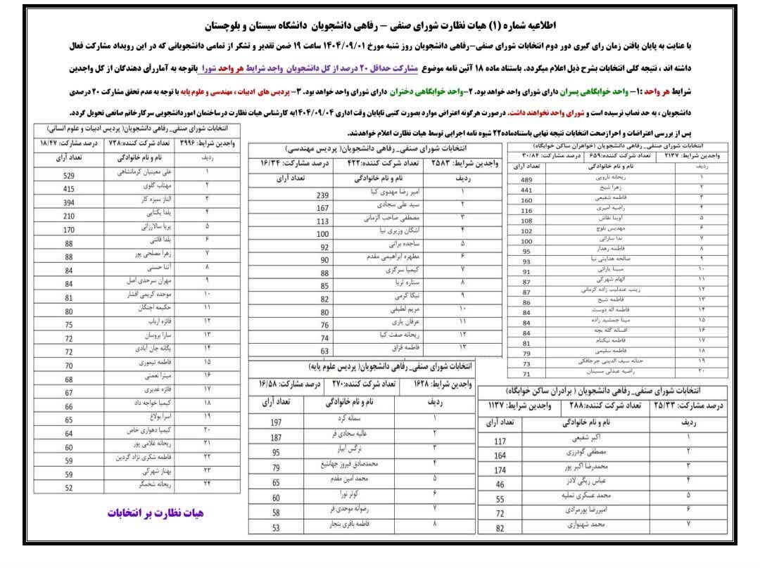 3. اطلاعیه شماره 1 هیات نظارت بر انتخابات شورای صنفی - رفاهی دانشجویان ( آبانماه 1404)