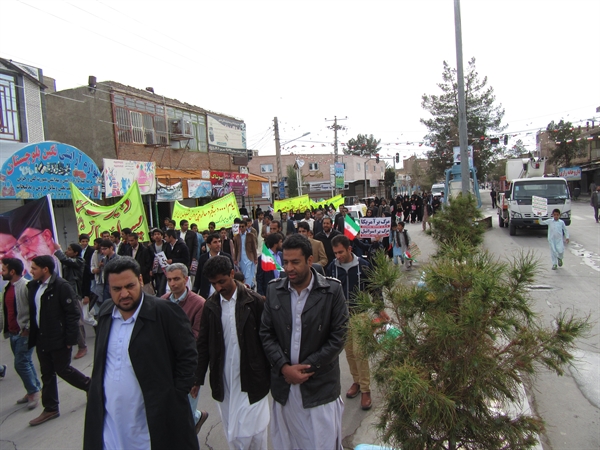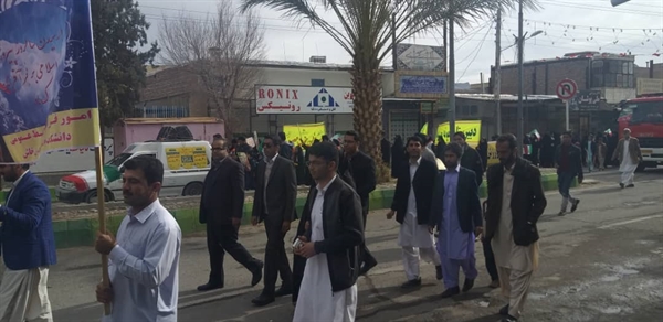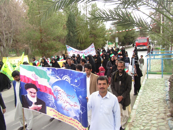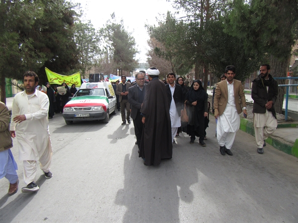 این راهپیمایی که با حضور پرشور سرپرست دانشکده، اعضای هیات علمی،کارکنان و دانشجویان این دانشکده همراه بود در کنار مردم انقلابی و همیشه در صحنه شهرستان خاش با سردادن شعار های انقلابی بار دیگر با آرمان های امام راحل بیعت نمودند.