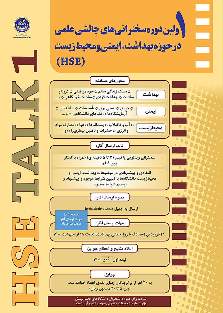 اولیت دوره سخنرانی چالش های علمی در حوزه بهداشت، ایمنی و محیط زیست (HSE)