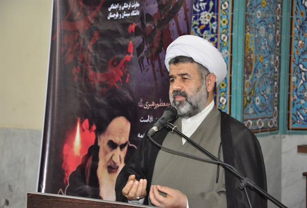 در این مراسم ریاست محترم دانشگاه جناب آقای دکتر رضایی به ایراد سخن پرداختند و تاریخچهی قیام 15 خرداد را بررسی نمودند. سپس حجه الاسلام و المسلمین حاج آقای محمودی در خصوص 14 و 15 خرداد و شهادت امام صادق (ع) سخنرانی نمودند.