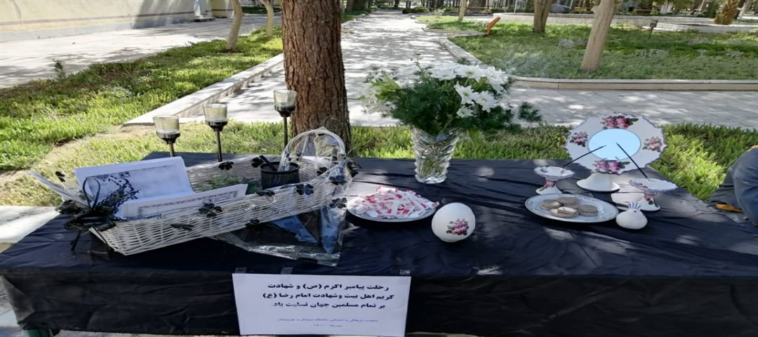 به مناسبت ایام شهادت پیامبر اکرم(ص)، امام حسن مجتبی (ع) و شهادت امام رضا(ع) مراسم عزاداری در محوطه باز معاونت فرهنگی و اجتماعی دانشگاه با حضور جمعی از اساتید و کارکنان همراه با قرائت زیارت عاشورا و عزاداری(روضه و سینه زنی) برگزار شد. لازم به ذکر است در پایان مراسم، پذیرایی توسط معاونت فرهنگی و اجتماعی دانشگاه صورت پذیرفت.