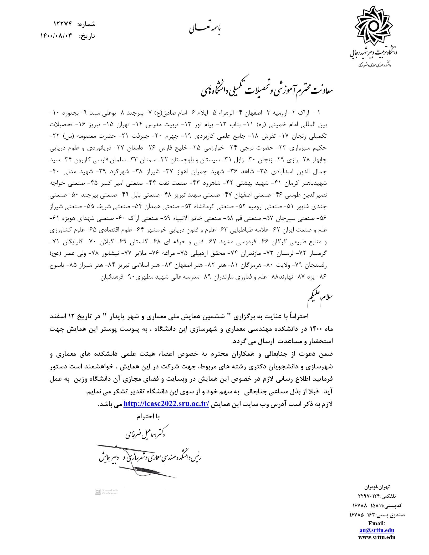 برگزاری "ششمین همایش ملی معماری و شهر پایدار" توسط دانشگاه تربیت دبیر شهید رجایی