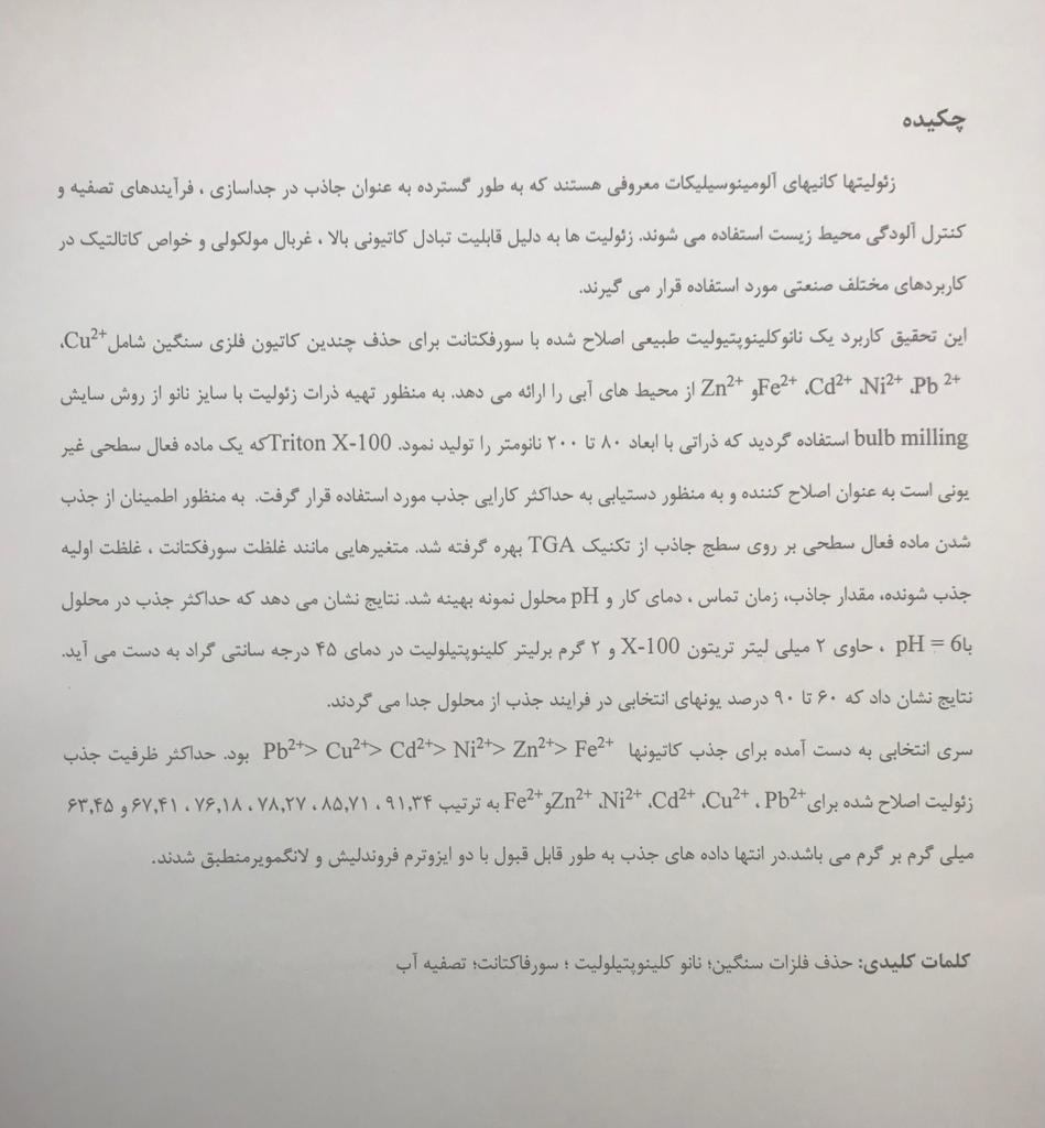 مطالعه و بررسی جداسازی یونهای فلزات سنگین و ترکیبات آلی فرار از آب با استفاده از غشاهای نانو سرامیکی در حضور یونهای مزاحم
