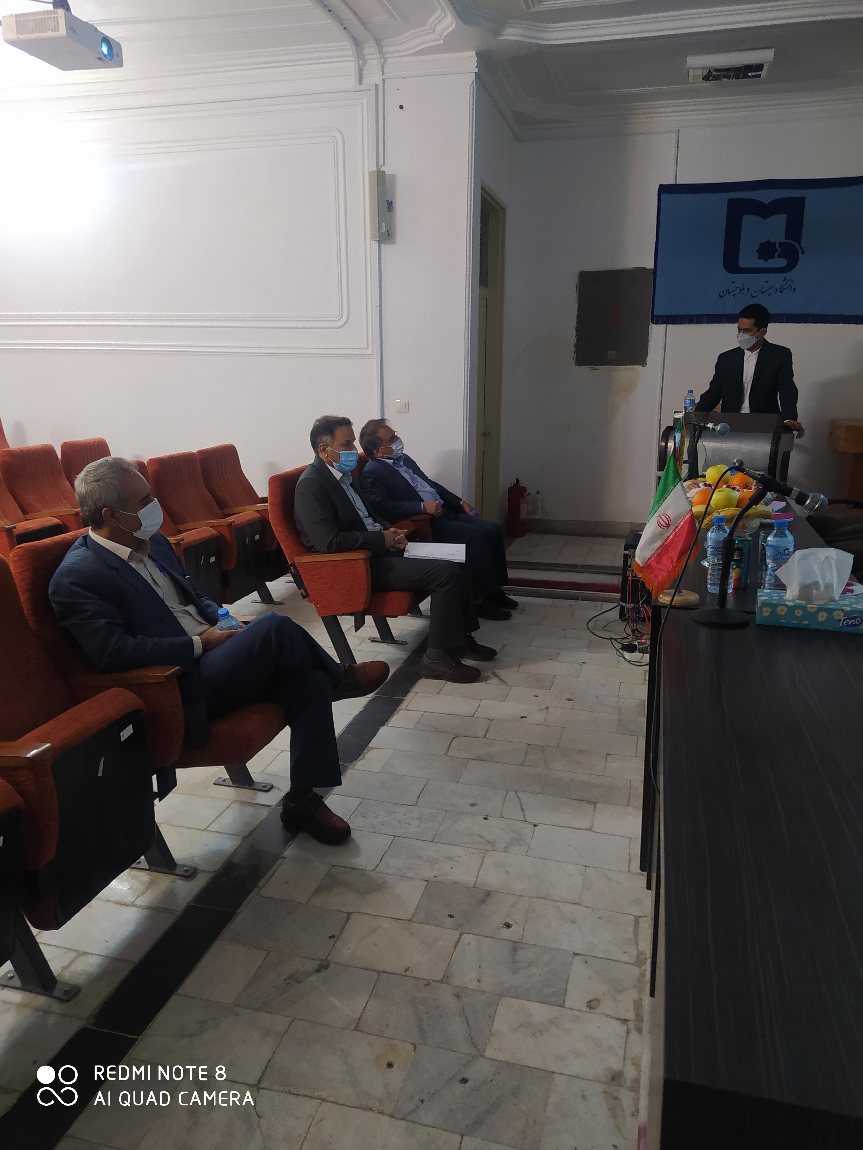 جلسه دفاع از رساله دکتری جناب آقای محمدانصاری دانشجوی رشته زبان و ادبیات فارسی با عنوان «بررسی و مقایسه تحلیلی نمادهای استعلایی در غزلیات بیدل دهلوی و شعر سهراب سپهری» با راهنمایی استادمحترم جناب آقای دکتر عباس نیکبخت و با داوری اساتید محترم جناب آقای دکتر عبدالعلی اویسی کهخا و جناب آقای دکتر محمدامیر مشهدی و با حضور استادمحترم جناب آقای دکتر عبدالله واثق عباسی نماینده تحصیلات تکمیلی در تاریخ 1400/9/15 با رعایت پروتوکل های بهداشتی در محل سالن سمعی بصری دانشکده ادبیات و علوم انسانی برگزار گردید .