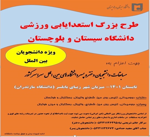 طرح بزرگ استعداد یابی ورزشی دانشگاه سیستان و بلوچستان