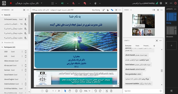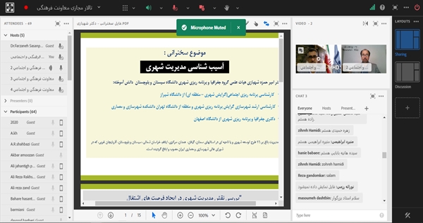 با عنایت به تحقق شعار سال 1401 « تولید ، دانش بنیان و اشتغال آفرین و به مناسبت هفته سرآمد آموزش» وبینار علمی، تخصصی «بررسی نقش مدیریت شهری در ایجاد فرصت های اشتغال با رویکرد عدالت اجتماعی، به میزبانی انجمن علمی جغرافیا دانشگاه سیستان و بلوچستان و همکاری انجمن های علمی دانشگاه خوارزمی تهران و واحد کرج دانشگاه فردوسی مشهد، دانشگاه دامغان، دانشگاه گلستان، دانشگاه محقق اردبیلی و دانشگاه جیرفت در تاریخ پنج شنبه 8 اردیبهشت ماه 1401 با حضور بیش از 70 نفر از دانشجویان و سایر شرکت کنندگان برگزار شد. در این نشست علمی چهار نفر از اعضای هیأت علمی دانشگاه های خوارزمی تهران ، فردوسی مشهد و دانشگاه سیستان و بلوچستان به ایراد سخن پرداختند.