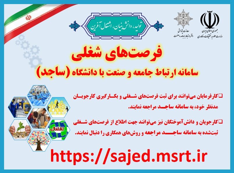 به گفته محمدسعید سیف، بخش « فرصتهای شغلی» تخصصی در این سامانه نیز راهاندازی شده است و دانشآموختگان جویای کار با مراجعه به سامانه ساجد (https://sajed.msrt.ir) میتوانند از فرصتهای شغلی مطلع شوند.