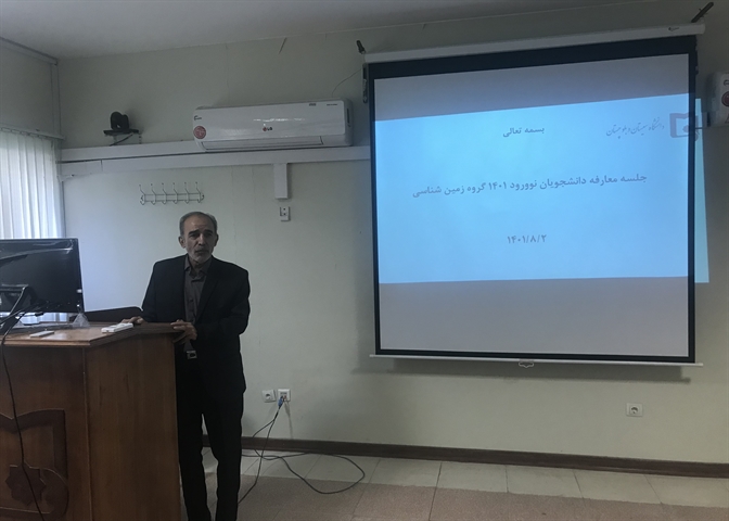 جلسه معارفه دانشجویان نوورود دانشکده علوم،گروه زمین شناسی در روز دوشنبه 1401/8/2 در محل سالن سمعی و بصری دانشکده برگزار گردید. در این جلسه در ابتدا ضمن خوش آمدگویی، نکات مهم آموزشی و فرهنگی و مرتبط با دانشگاه توسط جناب آقای دکتر محمد نبی گرگیج ریاست محترم دانشکده علوم و عضو هیات علمی گروه زمین شناسی بیان شد و نیز معرفی دانشکده علوم برای دانشجویان توسط ایشان انجام شد، سپس جناب آقای دکتر رضا جهانشاهی مدیر گروه زمین شناسی به معرفی گروه زمین شناسی، اساتید، رشته ها و آزمایشگاه های موجود در گروه زمین شناسی پرداختند. همچنین در این جلسه دکتر احمدی، دکتر قماشی و دکتر اسدی اعضای محترم هیات علمی گروه زمین شناسی به ایراد سخنرانی و معرفی رشته زمین شناسی برای دانشجویان نوورود پرداختند.