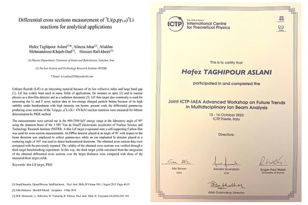 که به صورت مشترک توسط مرکز بینالمللی فیزیک نظری عبدالسلام و آژانس بین المللی انرژی اتمی در تاریخ ۱۸ تا ۲۲ مهر ماه جاری در تریست ایتالیا برگزار شد شرکت کرد و ضمن ارائه یک سخنرانی علمی-تخصصی در جریان آخرین دستاوردهای علمی و فنی مربوطه قرار گرفته و این دوره را با موفقیت به پایان رساند.
