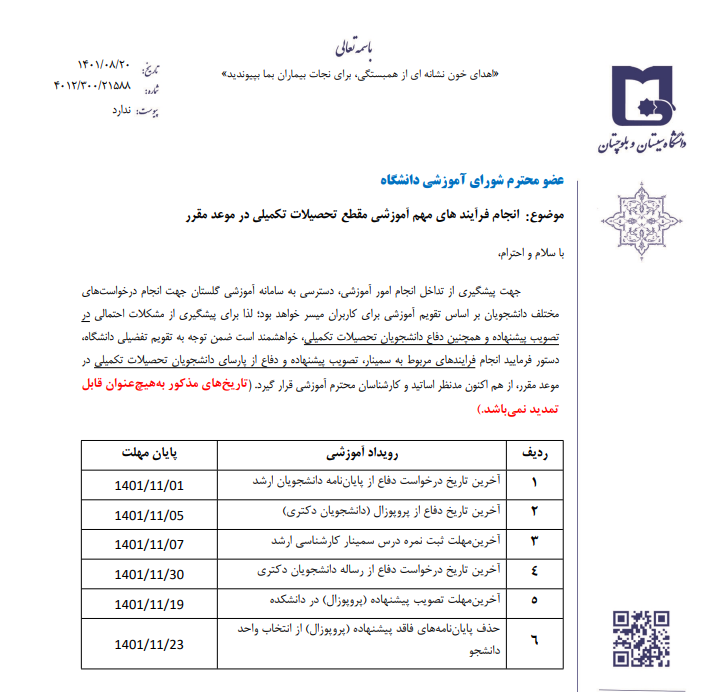 انجام فرآیندهای مهم آموزشی مقطع تحصیلات تکمیلی در موعد مقرر