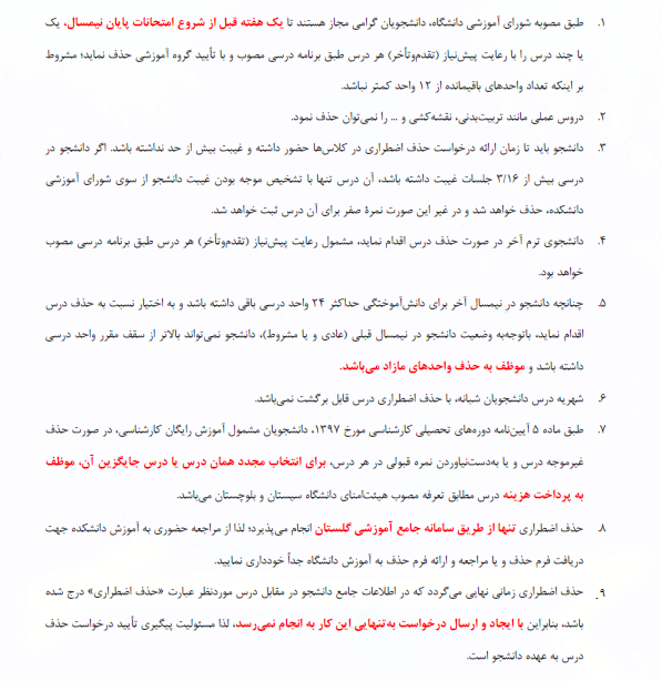 فرآیند حذف اضطراری در سامانه جامع دانشگاهی گلستان