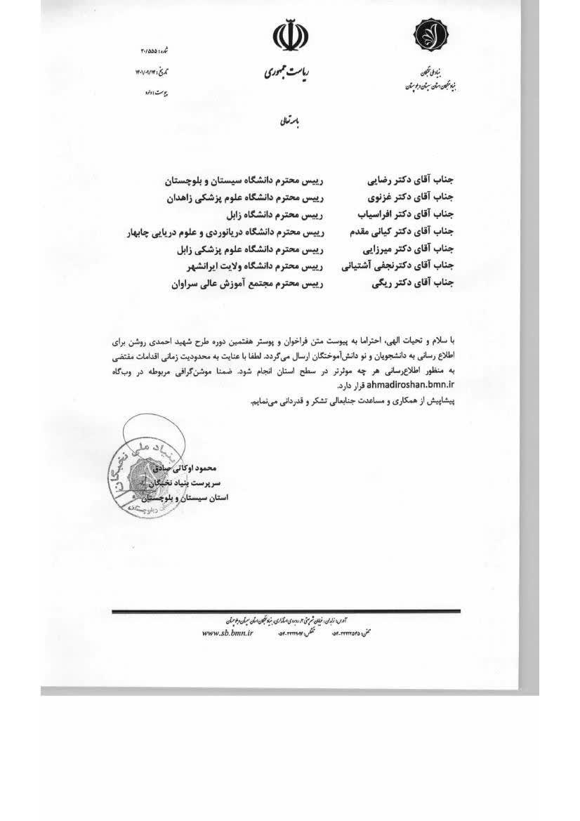 فراخوان هفتمین دوره طرح شهید احمدی روشن در سال 1402-1401
