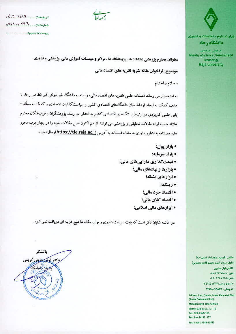 فراخوان مقاله( نشریه نظریه های اقتصاد مالی )