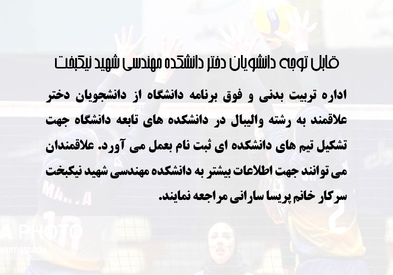قابل توجه دانشجویان دختر دانشکده مهندسی شهید نیکبخت