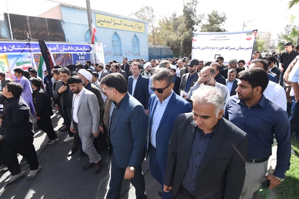 همچنین، گروه سرود مجتمع آموزشی دانشگاه سیستان و بلوچستان با اجرای سرودهای انقلابی و حماسی، جلوهای از شور و نشاط دانشآموزی و عشق به میهن را به نمایش گذاشتند و فضای مراسم را لبریز از حس افتخار و همبستگی ملی ساختند.
