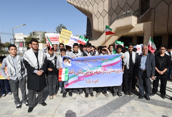 «مرگ بر آمریکا»، «مرگ بر اسرائیل» و «دانشجو بیدار است، از استکبار بیزار است»، بار دیگر بر وحدت، استقامت و پشتیبانی از آرمانهای انقلاب اسلامی تأکید نمودند.