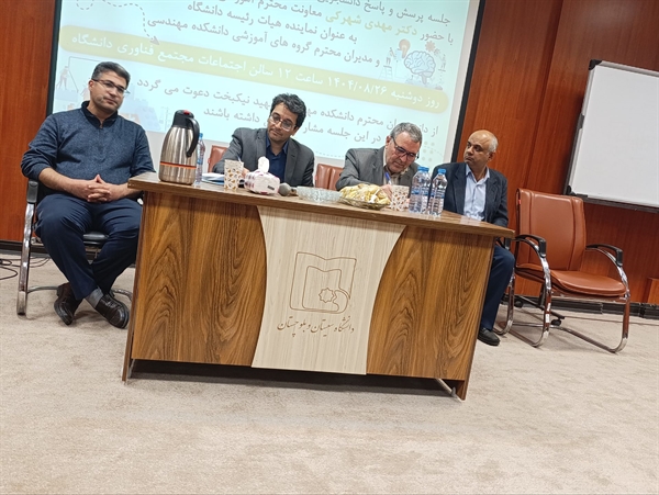 بنا به دستور ریاست محترم دانشگاه با توجه به اهمیت ایجاد فضای امنیت و آرامش در دانشگاه و یک پل ارتباطی مستقیم بین مدیران و دانشجویان،جلسه پرسش و پاسخ دانشجویی با حضور جناب آقای دکتر مهدی شهرکی معاونت محترم آموزشی و تحصیلات تکمیلی دانشگاه، هیأت رئیسه محترم دانشکده مهندسی شهید نیکبخت، مدیران و کارشناسان محترم گروه های آموزشی دانشکده وجمع پرشور دانشجویان گرانقدر دانشکده مهندسی شهید نیکبخت در سالن کنفرانس مجتمع فناوری و نوآوری دانشگاه روز دوشنبه مورخ 1404/08/26ساعت 12:00 الی 14:30 برگزار گردید.