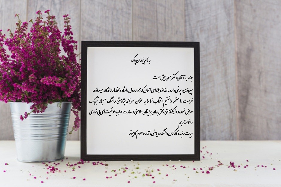 پیام تبریک هیات رئیسه و کارکنان دانشکده به آقای دکتر حسن میش مست