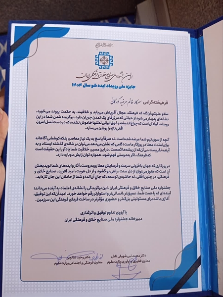 موفقیت مرضیه گورکانی نه تنها نشاندهنده استعداد و خلاقیت دانشجویان دانشگاه سیستان و بلوچستان است، بلکه ظرفیت این دانشگاه را در شکلدهی زیستبوم نوآوریهای فرهنگی و هنری کشور برجسته میکند.