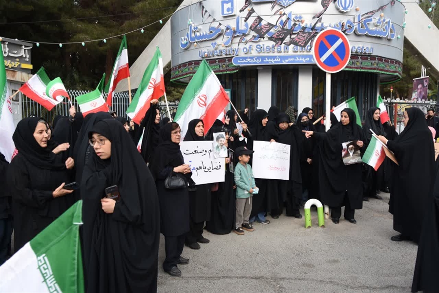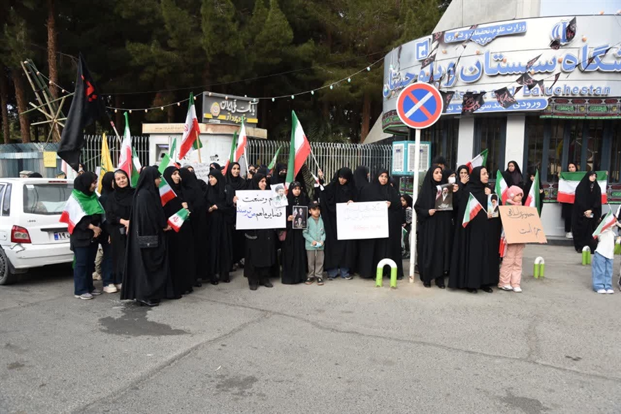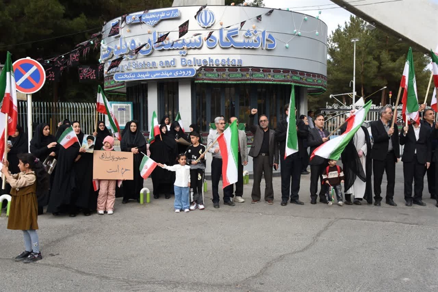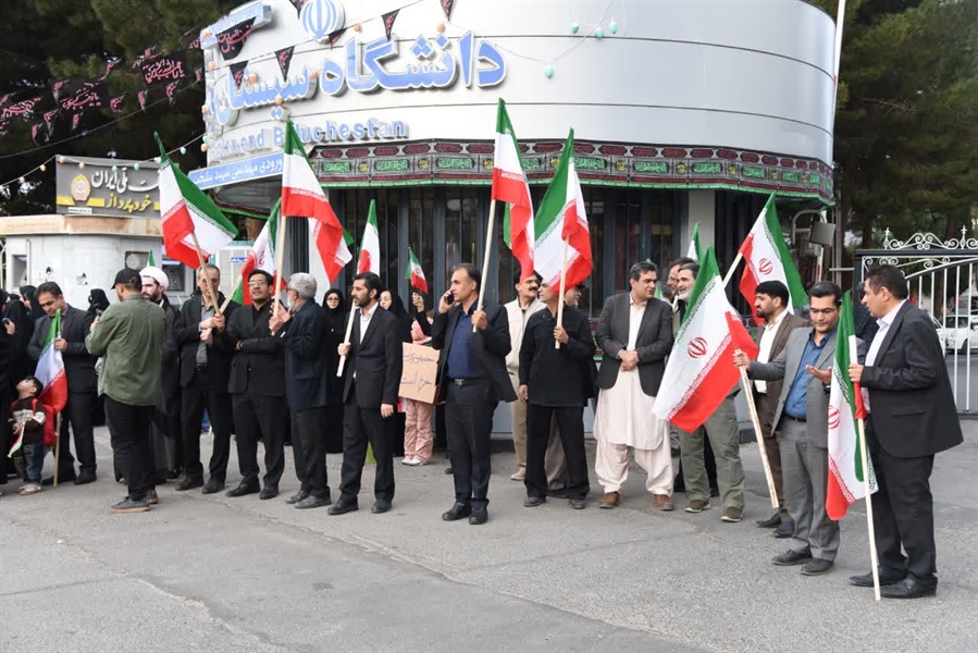 به گزارش روابط عمومی دانشگاه سیستان و بلوچستان، عصر روز سه‌شنبه ۱۱ فروردین‌ماه ۱۴۰۴، جمعی از استادان، کارکنان و دانشجویان دانشگاه سیستان و بلوچستان در اعتراض به حمله محور صهیونی‌– آمریکایی به مراکز علمی و دانشگاهی کشور، زنجیره انسانی بزرگی را تشکیل دادند.