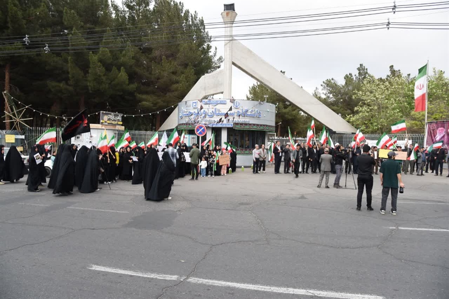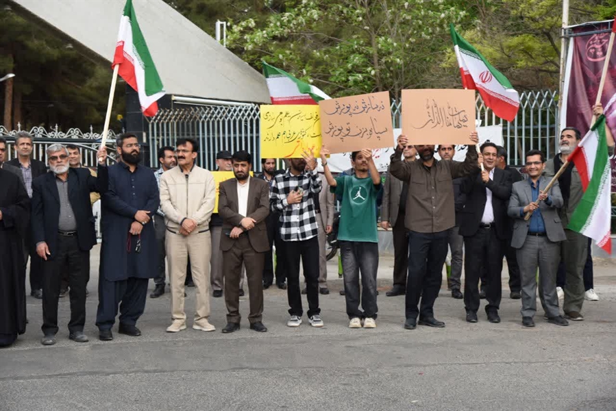 جمعی از استادان، کارکنان و دانشجویان دانشگاه سیستان و بلوچستان در اعتراض به حمله محور صهیونی‌– آمریکایی به مراکز علمی و دانشگاهی کشور، زنجیره انسانی بزرگی را تشکیل دادند.