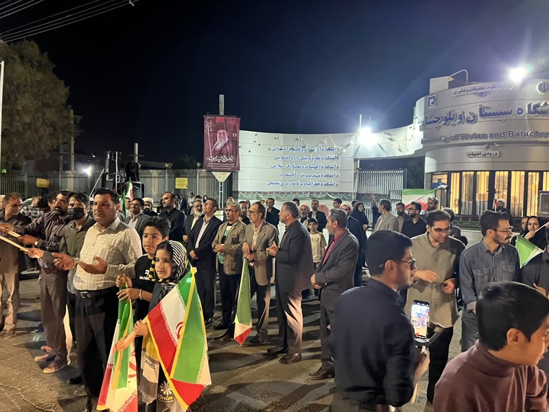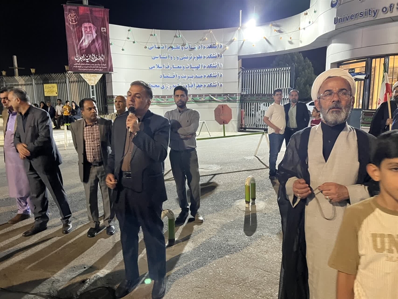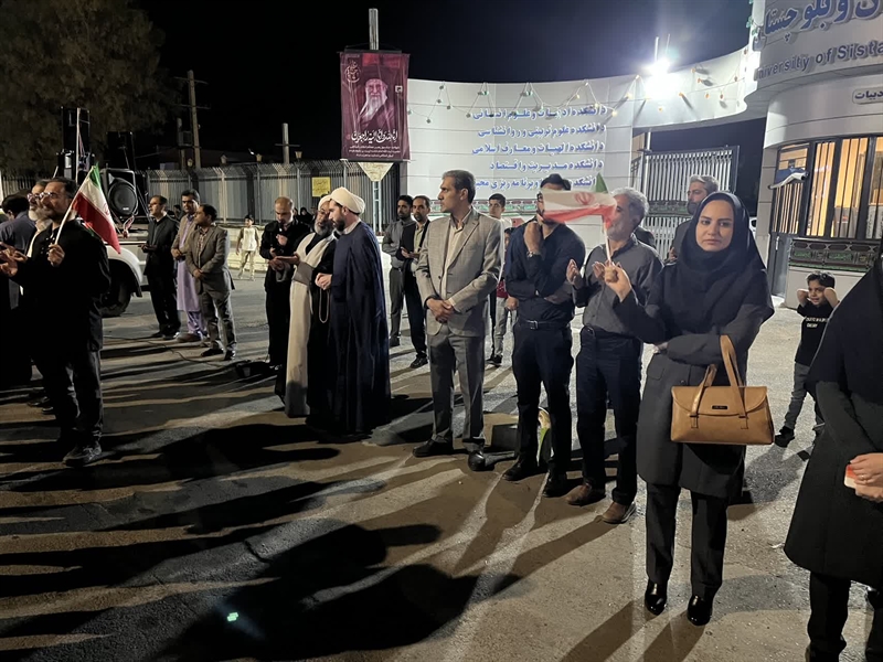همزمان با فرارسیدن پنجاهمین شب فراق رهبر شهیدان، دانشگاهیان کارکنان؛ اساتید و دانشجویان زاهدان با حضور در خیابانها، ضمن ابراز حزن و اندوه، بار دیگر بر وفاداری خود به آرمانهای انقلاب اسلامی تاکید کردند.