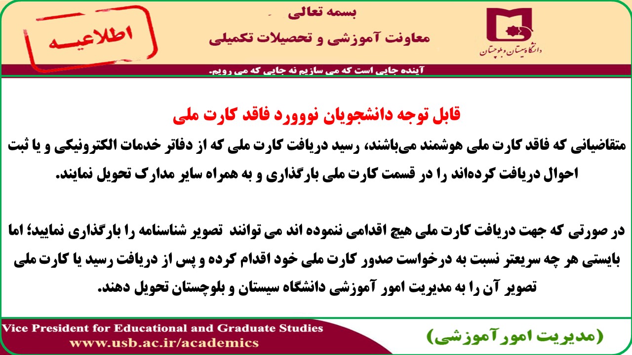 بدیهی است انتخاب واحد در دوره مهمانی در دانشگاه مقصد تنها باید بر اساس لیست دروس مندرج در معرفی نامه مهمانی اخذ شده از دانشگاه سیستان و بلوچستان صورت پذیرد در غیر این صورت دروس گذرانده شده در دانشگاه مقصد برای دانشگاه سیستان و بلوچستان قابل قبول نمی باشد.