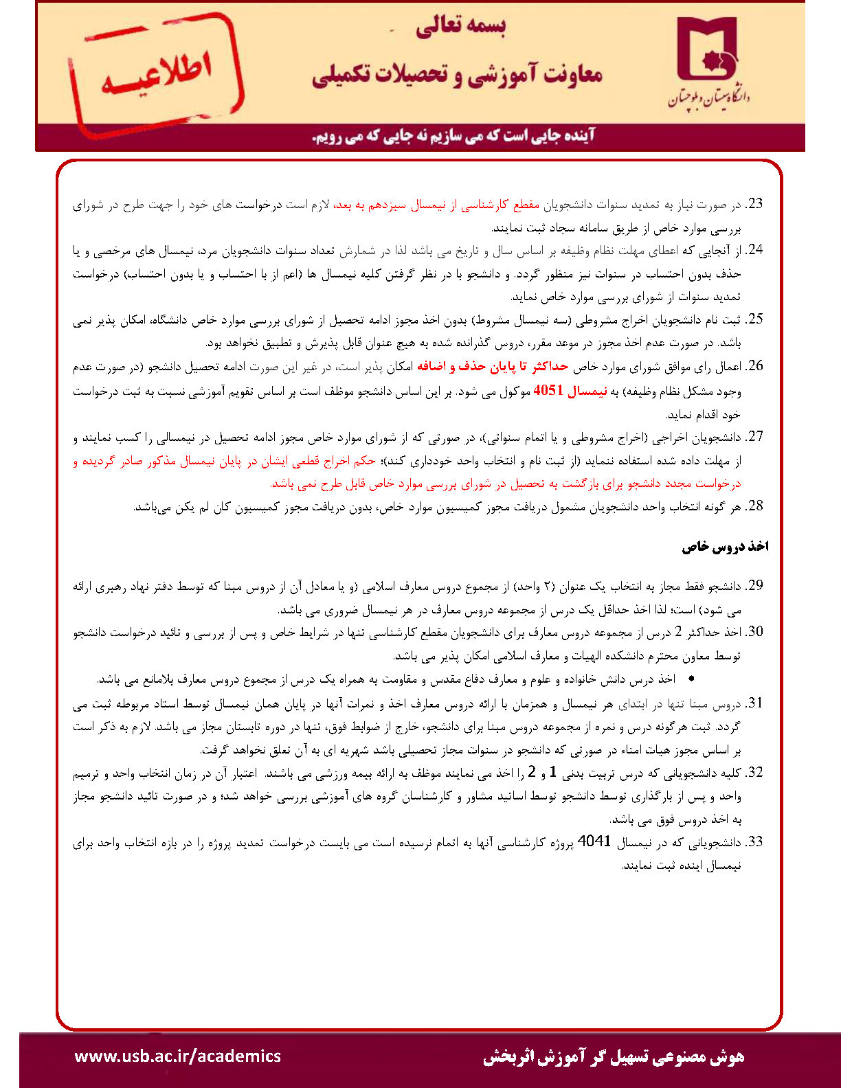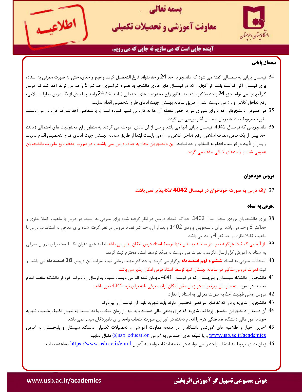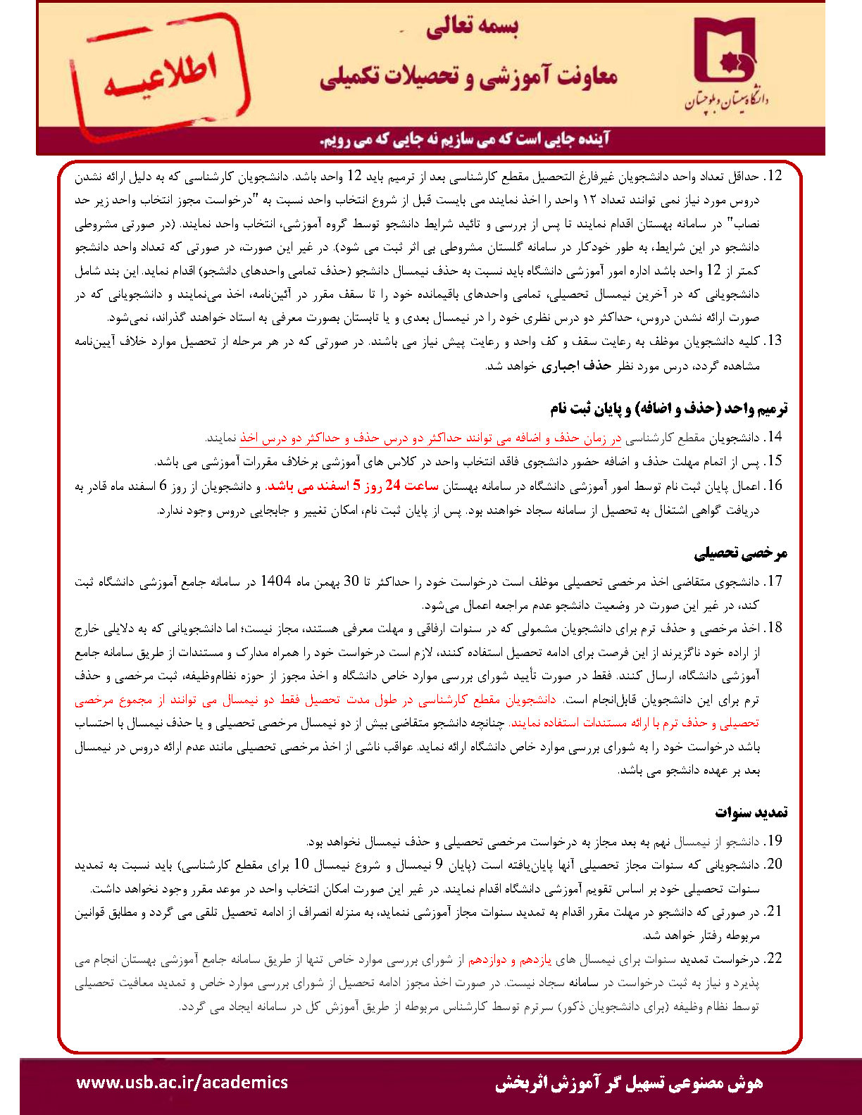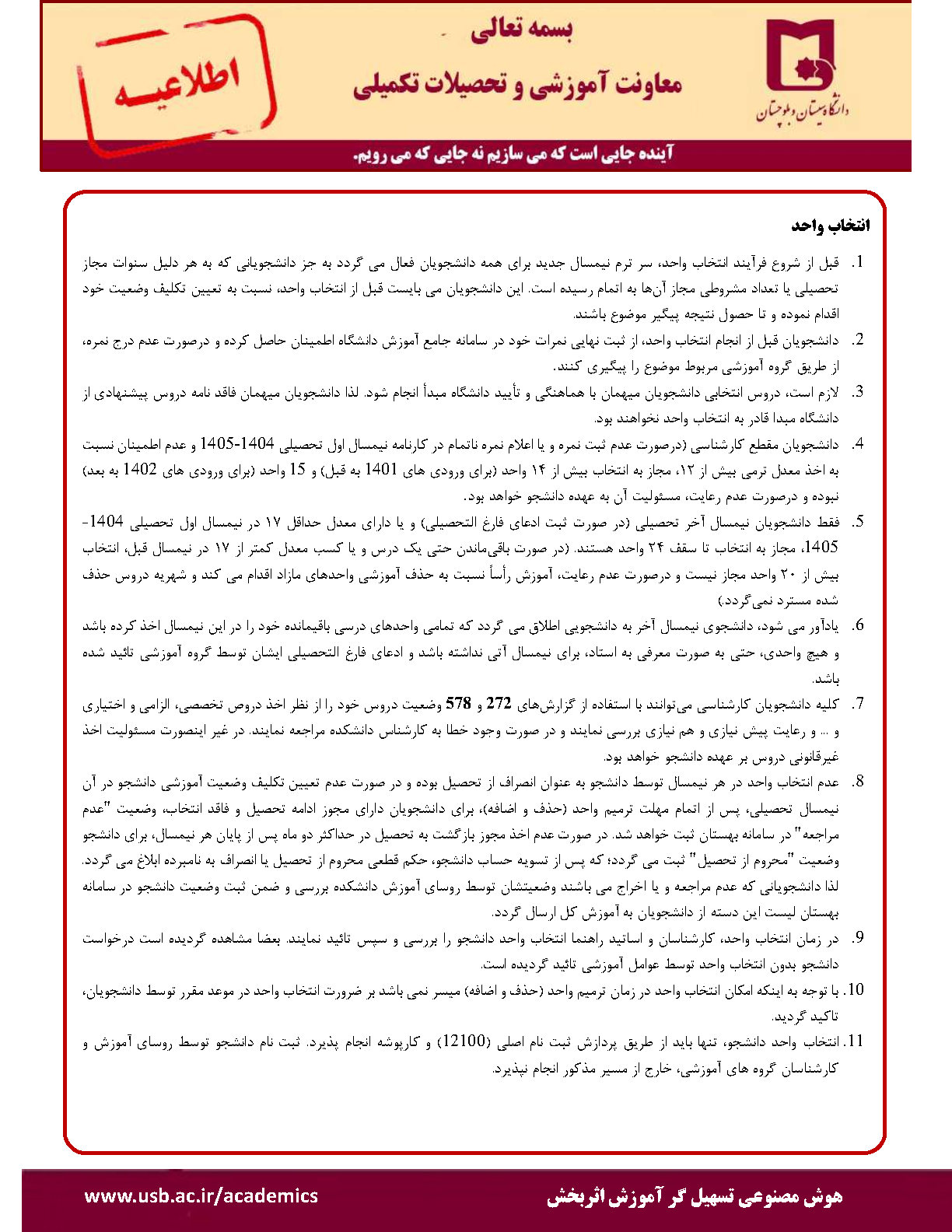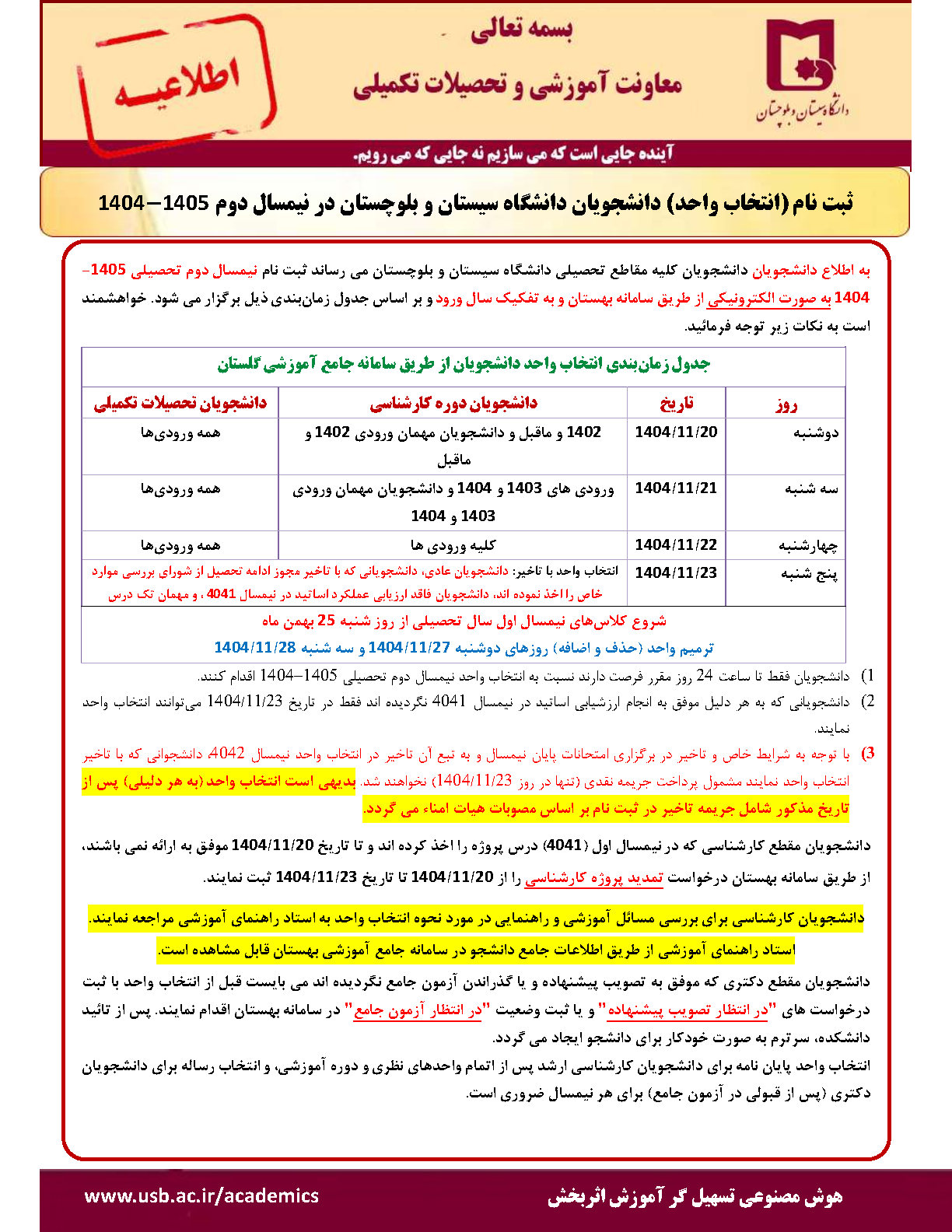 ثبت نام (انتخاب واحد) دانشجویان دانشگاه سيستان و بلوچستان در نیمسال دوم 1405-1404