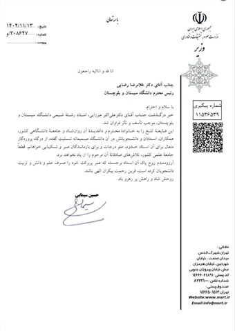 دکتر رضایی ریاست دانشگاه به مناسبت درگذشت استاد گرانقدر دکتر علی اکبر میرزایی پیام تسلیتی صادر کرد.